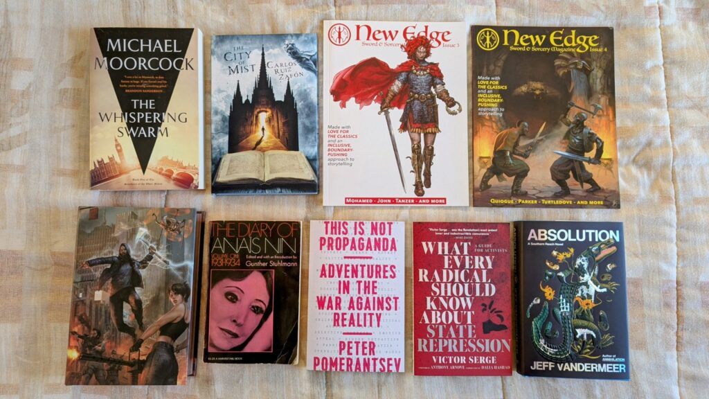 - Michael Moorcock, The Whispering Swarm [2024.12.01] – Purchased at Bluestocking Bookshop in Holland, Michigan