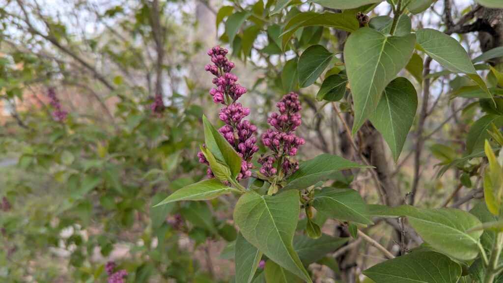 [Lilac blossoms on a small lilac tree I pass on my morning walks to the office.]