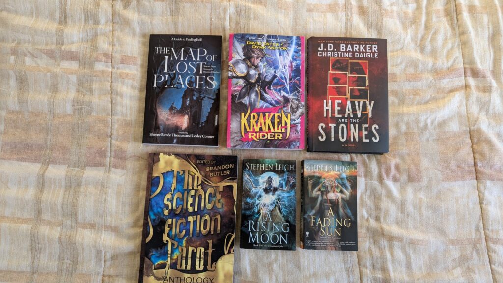 - Brandon Butler (editor), The Science Fiction Tarot (tdotSpec, Inc) [2025.01.25] – An anthology created for a Kickstarter campaign. I picked this up at ConFusion 2025, where Storm Humbert, one of the anthology contributors, had copies for sale. (inscribed)