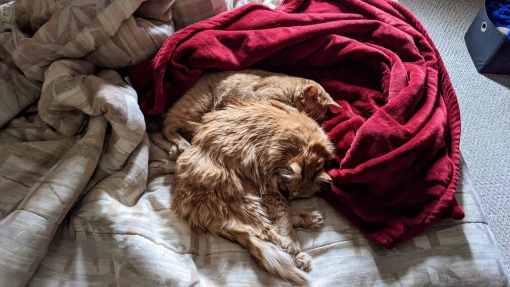 Nothing new arrived at the house this past week, so here is a photo of Poe and Pepper, napping the afternoon away.