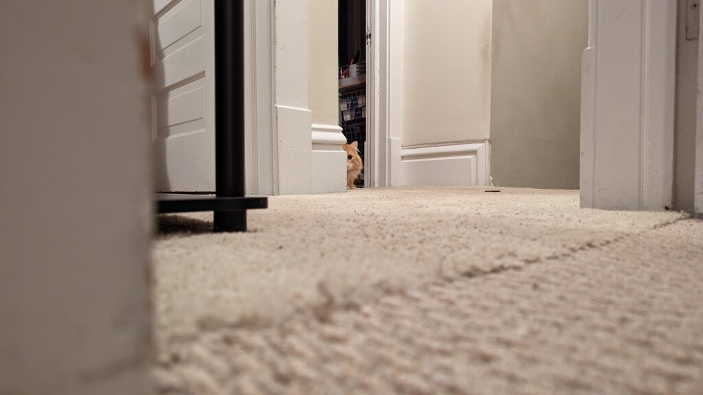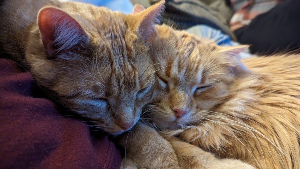 Writing for me generally doesn’t start until after I have already dealt with most potential distractions. Therefore my writing time is fairly distraction free, aside from interruptions from the orange maniacs (one of which is pictured above).