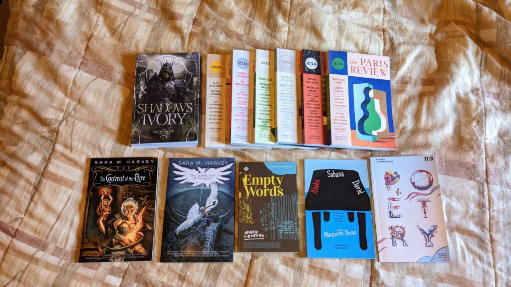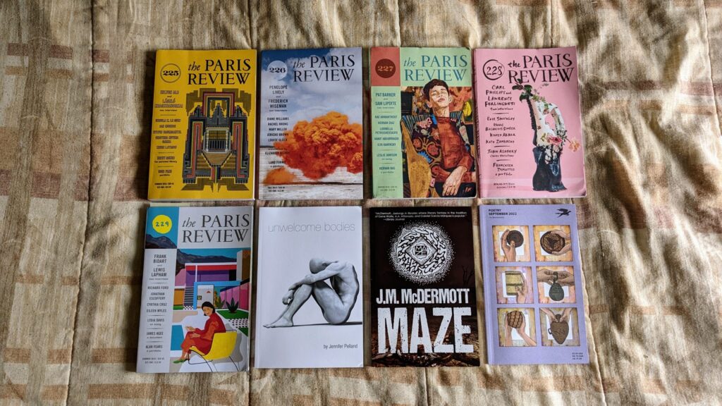 Things were kind of slow in August, reading-wise, due to a surge in burnout at the beginning of the month, and other assorted drains on my energy and attention span. I did make it through a few more issues of The Paris Review, and some interesting genre fiction as well.
