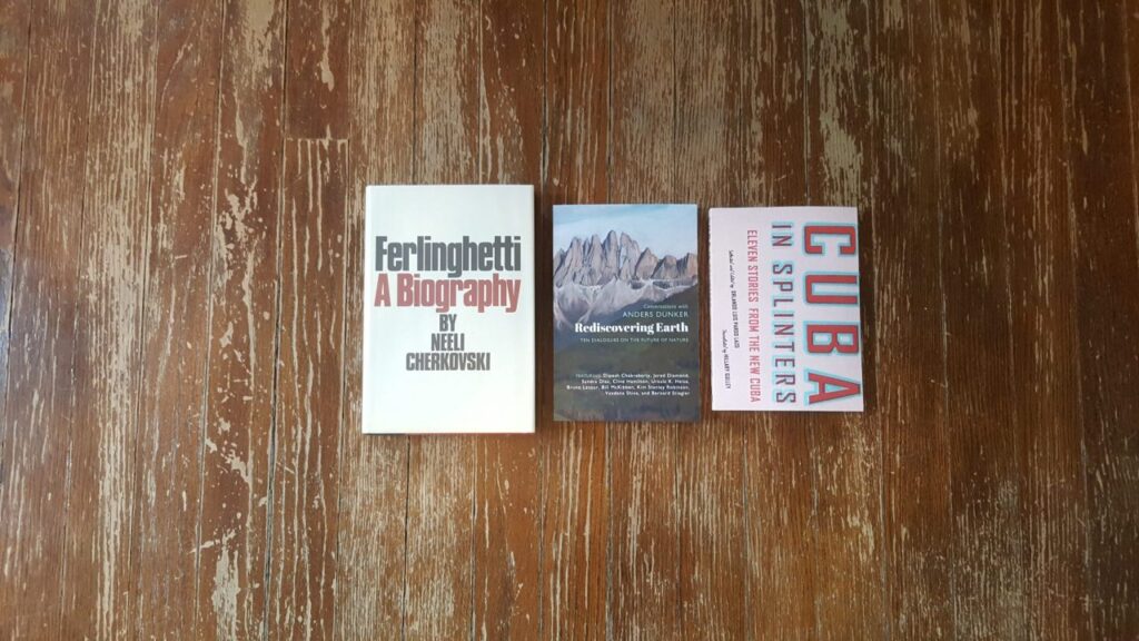 Three books arrived this past week. On the left is Neeli Cherkovski‘s biography of Lawrence Ferlinghetti, released in 1979, when Ferlinghetti was 60 (!). I picked this up from Third Mind Books in Ann Arbor, which is an excellent resource for anyone interested in the Beats, as well as the Modernist, New York School and Black Mountain poets.