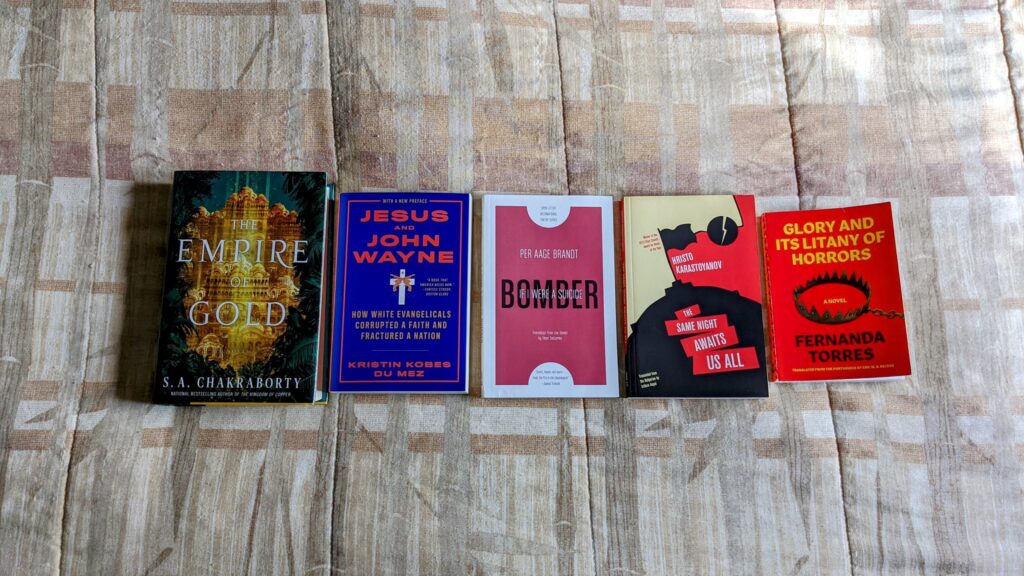 Starting in 2023 I am combining my annual book acquisition list and my monthly readings lists into a single monthly post. Ideally my rate of reading will be greater than my rate of book acquisition. This month, however, I went to ConFusion, and while I did not grab as many books as I usually do, I still picked up four new titles.